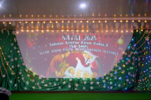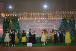 Perayaan Natal yang dilaksanakan Sekolah Kristen Kalam Kudus 2 pada Sabtu, 13 Desember 2025 dengan tema “Allah Hadir untuk Menyelamatkan Keluarga” yang mengajak seluruh warga sekolah untuk merefleksikan makna kehadiran Tuhan dalam kehidupan keluarga serta pentingnya kasih, kepedulian, dan kebersamaan. Acara natal diikuti oleh siswa, guru, tenaga kependidikan, serta orang tua murid. Perayaan Natal diawali dengan ibadah yang berlangsung diisi dengan puji-pujian, doa dan renungan firman yang menekankan bahwa kehadiran Allah membawa pengharapan dan keselamatan bagi setiap keluarga, terutama di tengah berbagai tantangan kehidupan.